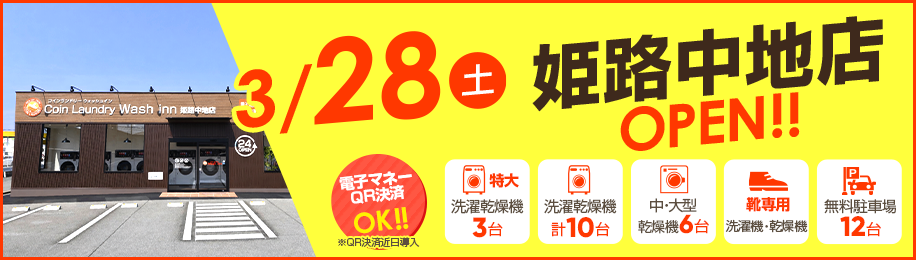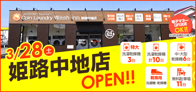 Wash inn姫路中地店が3月28日(土)10時OPEN!